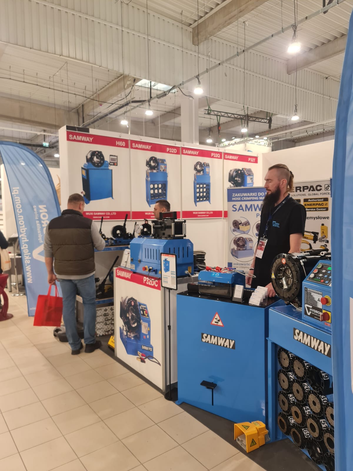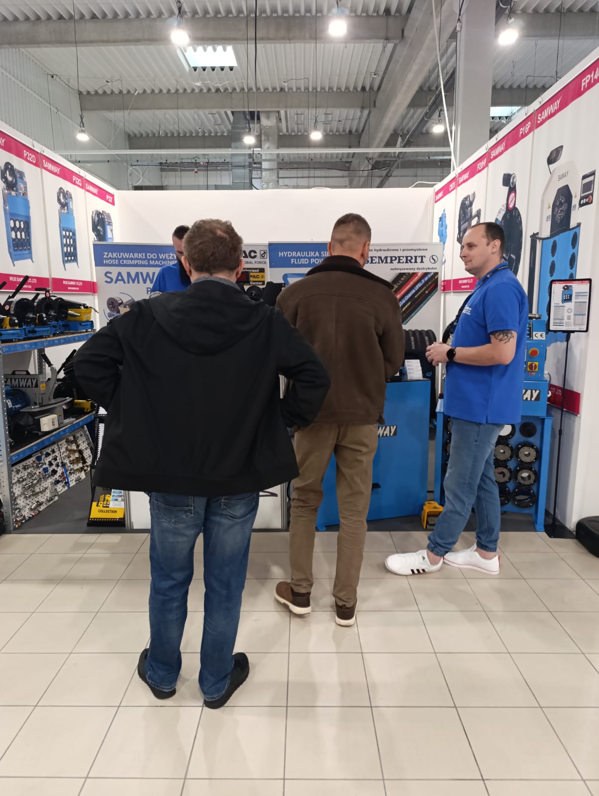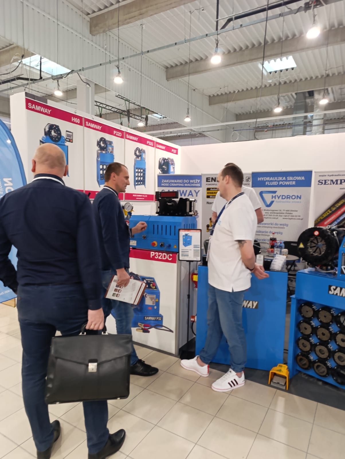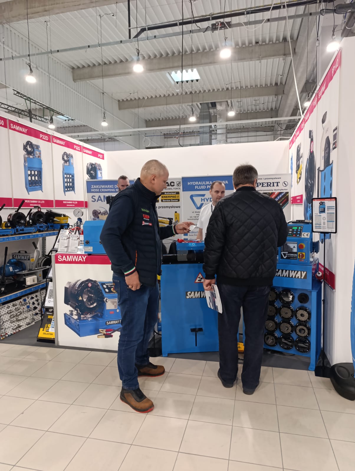 Targi były wyjątkową okazją do prezentacji naszych nowoczesnych zakuwarek, skórowarek i przecinarek do węży hydraulicznych SAMWAY, które cieszyły się dużym zainteresowaniem zarówno wśród specjalistów, jak i przedstawicieli firm produkcyjnych oraz serwisowych. Nasi eksperci chętnie dzielili się wiedzą na temat doboru maszyn, ich zastosowania i sposobów optymalizacji pracy w warsztacie.