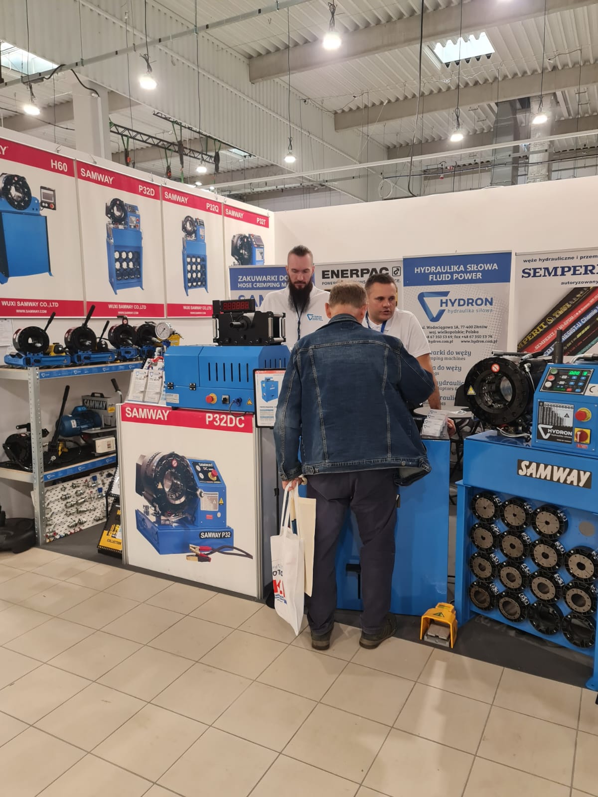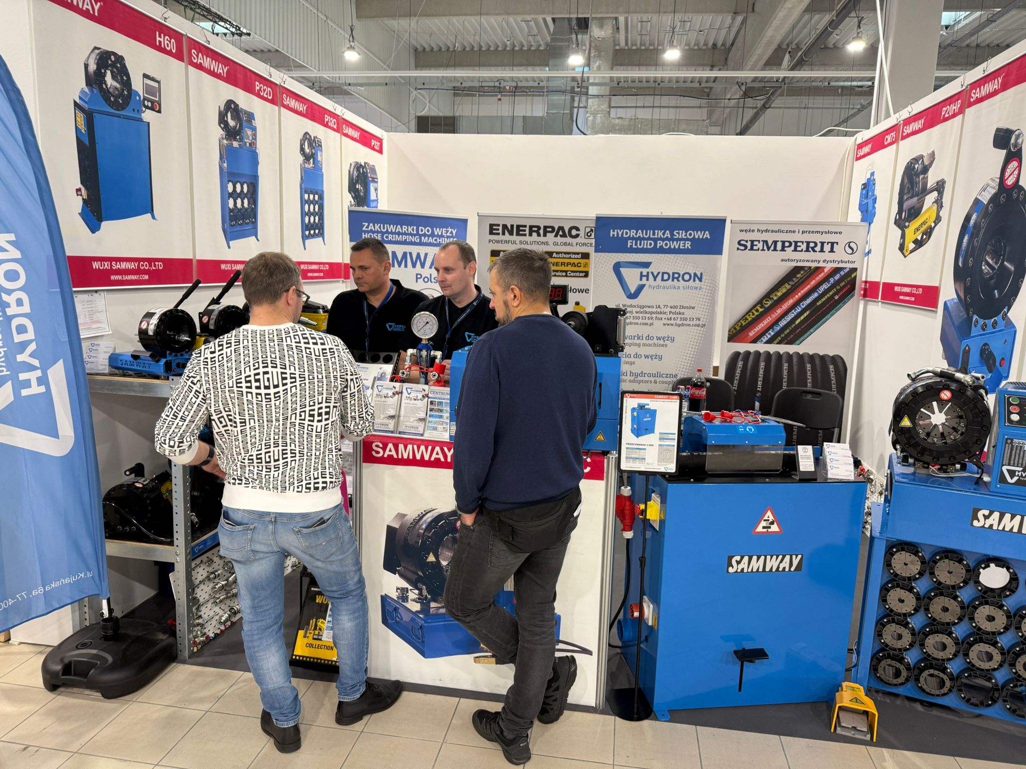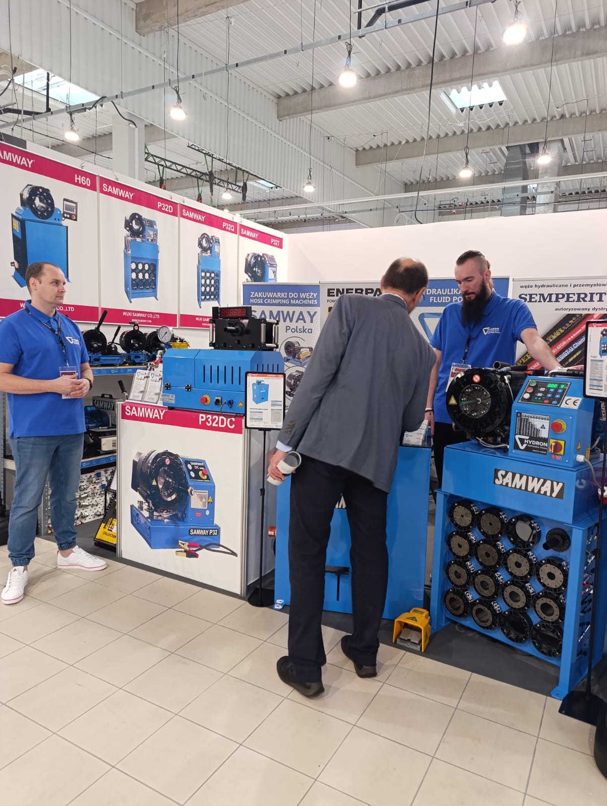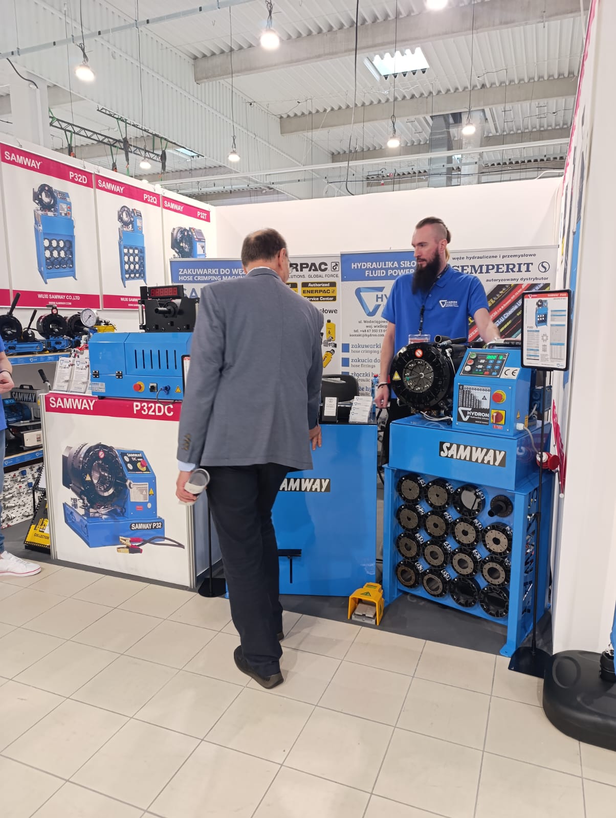 Targi były wyjątkową okazją do prezentacji naszych nowoczesnych zakuwarek, skórowarek i przecinarek do węży hydraulicznych SAMWAY, które cieszyły się dużym zainteresowaniem zarówno wśród specjalistów, jak i przedstawicieli firm produkcyjnych oraz serwisowych. Nasi eksperci chętnie dzielili się wiedzą na temat doboru maszyn, ich zastosowania i sposobów optymalizacji pracy w warsztacie.